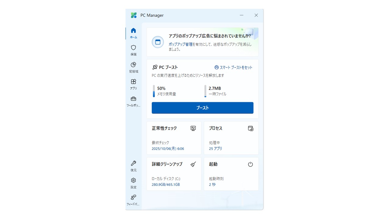 デスクトップパソコンが一番よく使うので、たまにPC Manegerを使う。 不要なブラウザーのゴミなど12GBも掃除してくれた。